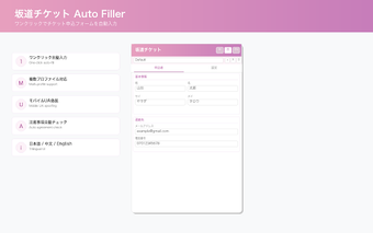 坂道チケット一键填写 é uma extensão do Chrome que automatiza o preenchimento de formulários para ingressos de grupos de ídolos japoneses, como 櫻坂46 e 日向坂46. Com uma interface simples, permite que os usuários insiram suas informações pessoais uma única vez e as utilizem para várias inscrições. A ferramenta suporta múltiplos perfis, facilitando a gestão de diferentes contas de usuário. Além disso, é necessário ativar o modo móvel do navegador para acessar as páginas de inscrição corretamente.